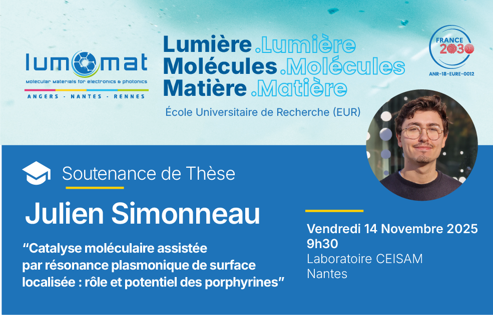 News Soutenance de Thèse – Julien Simonneau – Vendredi 14 Novembre 2025: Catalyse moléculaire assistée par résonance plasmonique de surfaces localisées : rôle et potentiel des porphyrines Lire la suite » November 12, 2025