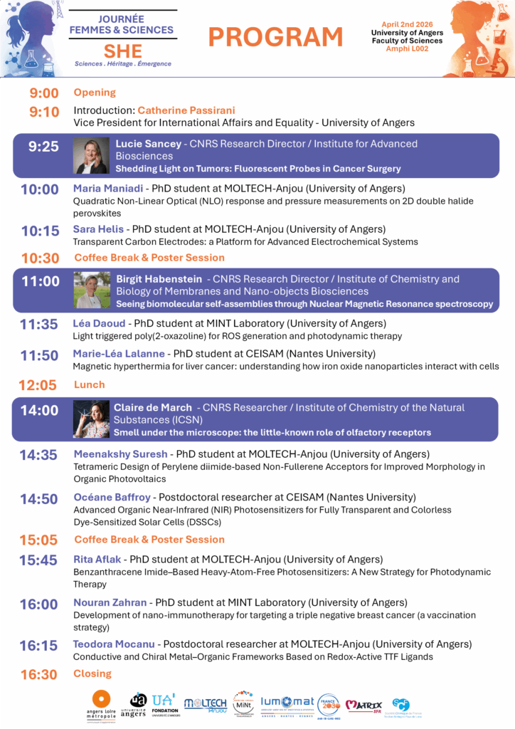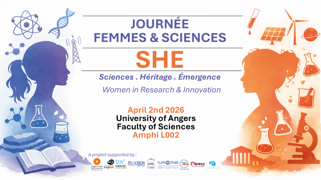 Initiated and organized by PhD students Sara Helis and Lea Daoud at the MOLTECH-Anjou and MINT laboratories, SHE highlights the scientific heritage built by women researchers, while giving strong visibility to the next generation of scientists shaping the future of research. The event showcases women’s contributions across chemistry, physics, materials science, and life sciences, and promotes dialogue at the interface of disciplines.